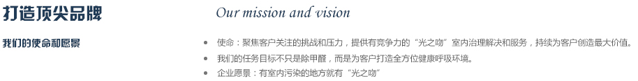 2012年公司斥巨資從德國(guó)專(zhuān)業(yè)空氣研發(fā)實(shí)驗(yàn)室引進(jìn)銳鈦型納米二氧化鈦研發(fā)成果,同時(shí)與國(guó)內(nèi)知名高校進(jìn)行合作,成立“光之吻”品牌,致力于為人類(lèi)創(chuàng)作純凈,健康的呼吸環(huán)境,成為你身邊的健康衛(wèi)士,實(shí)現(xiàn)365天健康呼吸的夢(mèng)想,目前是同類(lèi)產(chǎn)品中最有競(jìng)爭(zhēng)力的品牌之一。